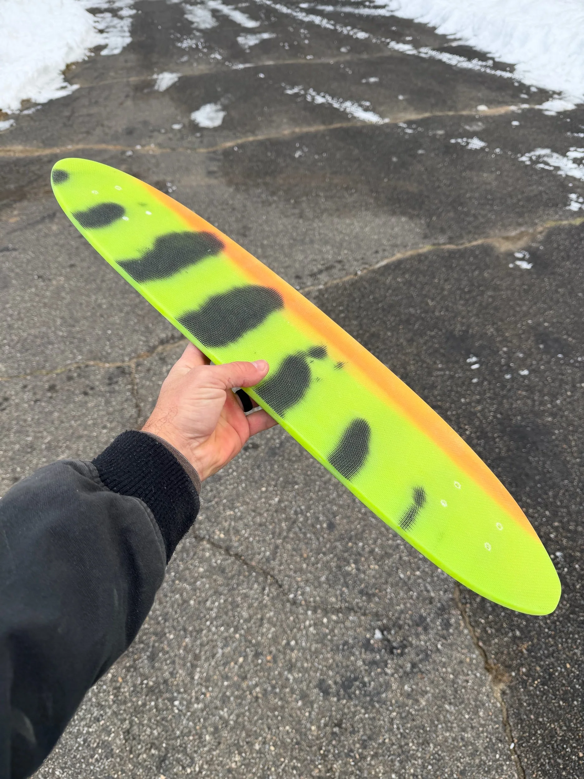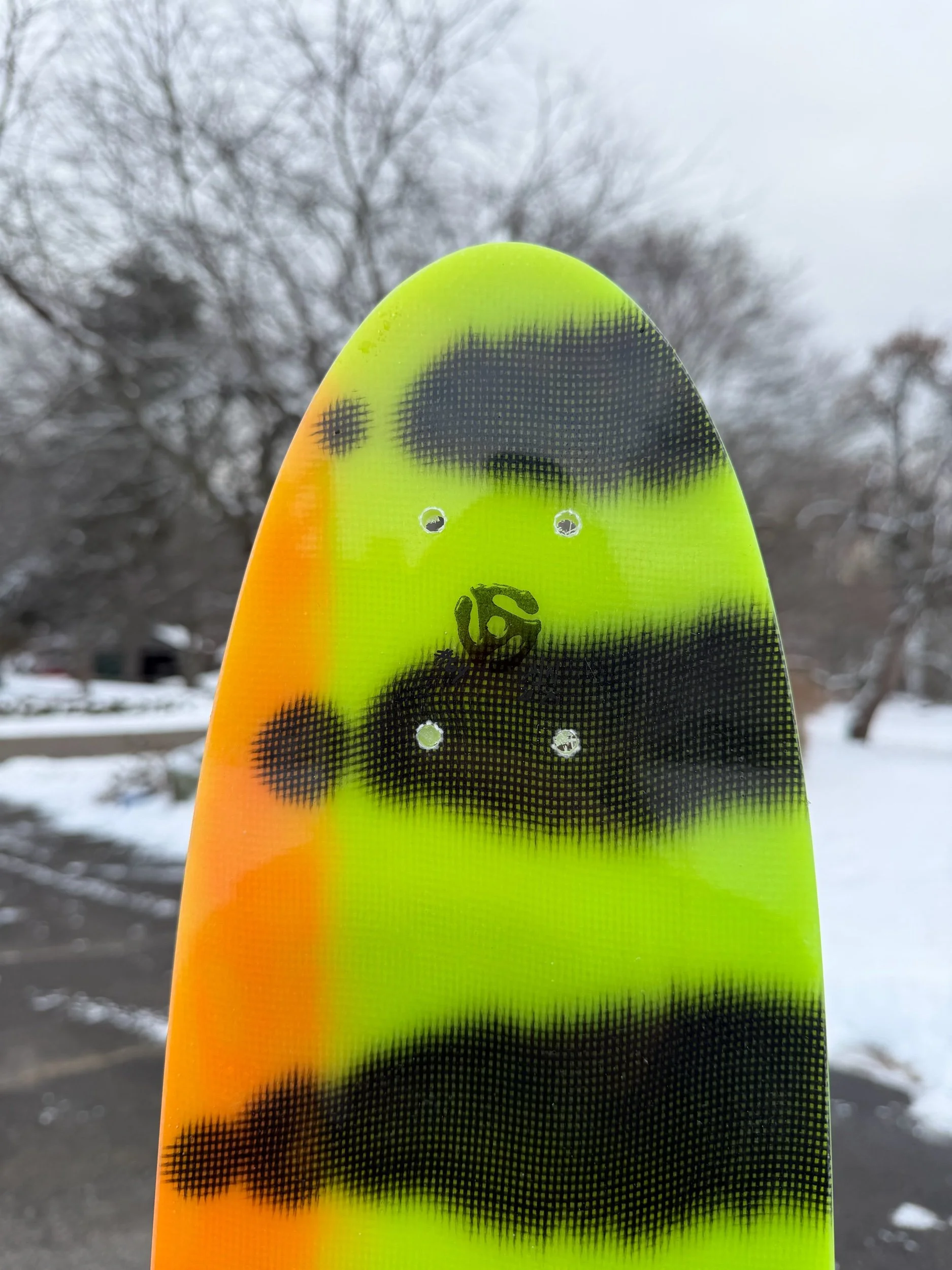 This is a new template to accommodate the feedback and feelings of the first few of these. I have increased the template width in the nose to increase front foot leverage, as many people have taken to riding the original outline backwards with the wide point forward. additionally, I have squared the tail off for increased impact strength.